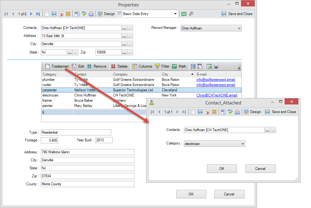 You create a custom table for real estate transactions. You attached multiple attorneys, one for the buyer and one for the seller. On any particular real estate transaction one attorney in your contact list may be the buyers then on another transaction may be the seller.